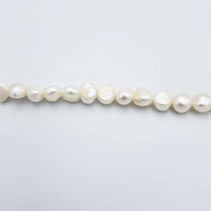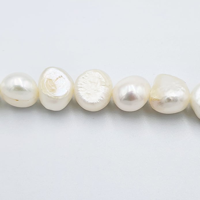 פנינים אמיתיות מתורבתות א-סימטרי 9X8ממ, חור 1 מ"מ, כ-40 ס"מ בשורה